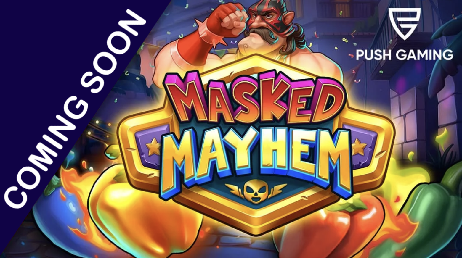 El próximo 1 de octubre, Push Gaming debutará con su nueva tragamonedas Masked Mayhem. Este lanzamiento celebra el vibrante mundo de la lucha libre, ofreciendo a los jugadores una cuadrícula de 5×5 con 50 líneas de pago y un elenco de coloridos personajes y símbolos temáticos.